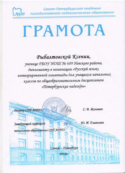 Государственное бюджетное общеобразовательное учреждение начальная общеобразовательная школа № 689 Невского района Санкт-Петербурга